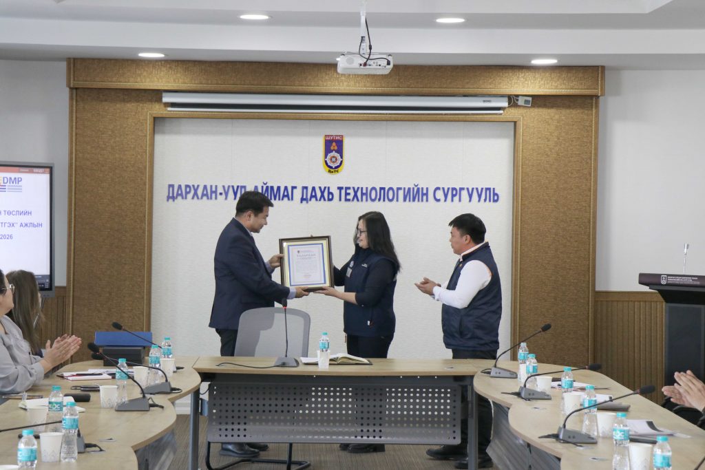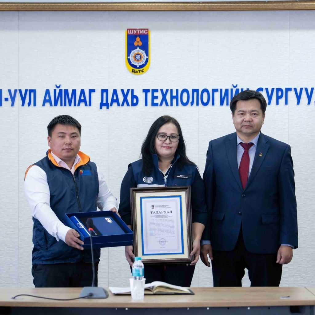 ШУТИС-ийн Дархан-Уул аймаг дахь Технологийн сургуулийн зүгээс Монгол Улсад инженерийн боловсон хүчин бэлтгэх үйлсэд бодит хөрөнгө оруулалт хийж, үр дүнтэй ажиллаж байгаад талархал илэрхийлж, “Дарханы төмөрлөгийн үйлдвэр” ХХК-д “Талархал” гардууллаа.